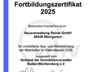 Fortbildungszertifikat 2025 Hausverwaltung Reiner GmbH