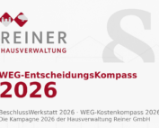 WEG-EntscheidungsKompass 2026: BeschlussWerkstatt 2026 & WEG-Kostenkompass 2026 2026 bündeln wir zwei Schwerpunkte zu einer Kampagne: „BeschlussWerkstatt 2026“ (rechtssicher beschließen) und „WEG-Kostenkompass 2026“ (Kosten fair und korrekt steuern). Juristisch fundiert, aber so erklärt, [...]